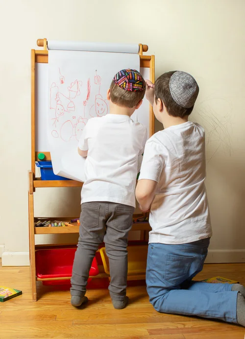 These boys love art. And it was pretty obvious! Coloring is what they live to do! And that’s so beautiful! This shows creativity and brains in action! Mom wanted to capture this aspect of their lives, how her boys loved to color. She wants to remember that. So after taking some individual photos of each boy, we pulled out the easel and crayons and let the boys do their thing. They just did what they usually do, while I talked to them and asked them lots of questions about what they were coloring, which color crayon they loved best, and so forth. And while they were coloring, I just kept taking pictures of them acting naturally. Of course they got excited because this is something they just LOVE doing!